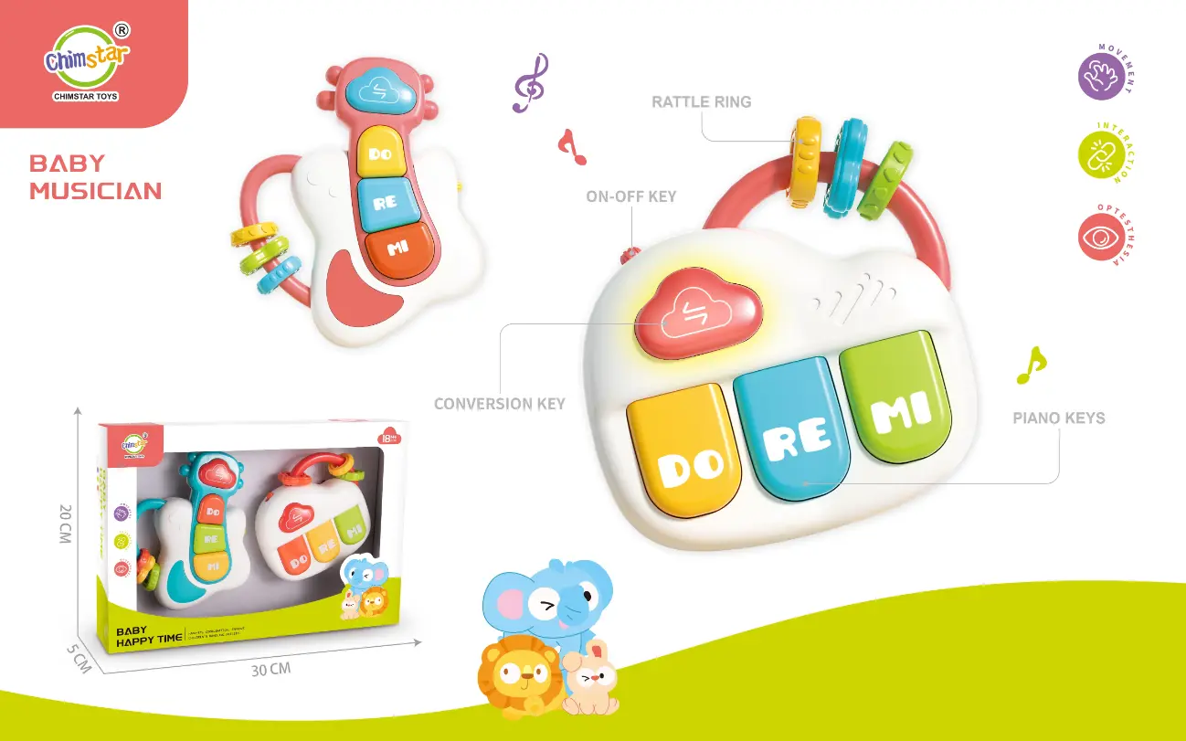 The Baby Musical Happy Time Toys feature colorful designs, engaging melodies, and interactive elements. Perfect for sensory development, these toys stimulate auditory and visual senses, encouraging exploration and play for infants and toddlers.