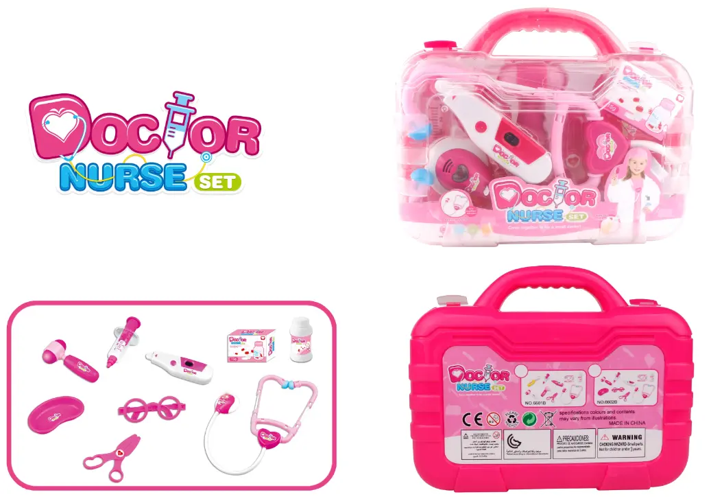 The Doctor Nurse Pink Toys set features vibrant, child-friendly medical instruments, including a stethoscope, thermometer, and syringe. Perfect for imaginative play, it encourages kids to explore healthcare roles while promoting empathy and nurturing skills.