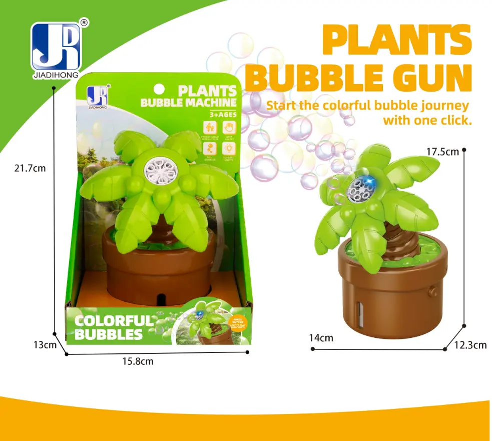 The Plants Bubble Machine Toy creates a whimsical bubble-filled environment, featuring vibrant plant designs. Perfect for outdoor play, it entertains children with endless bubbles, encouraging imaginative play and enhancing sensory experiences in a fun, engaging way.
