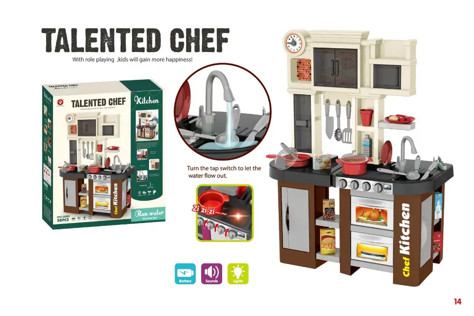 The Talented Chef 58PC Kitchen Set includes realistic cookware, utensils, and play food, fostering creativity and imaginative play. It promotes motor skills, social interaction, and provides endless cooking fun, making it perfect for young aspiring chefs.